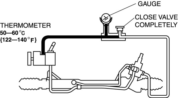 9. Turn the steering wheel fully to the left and right, then measure the fluid pressure generated at the gear housing.