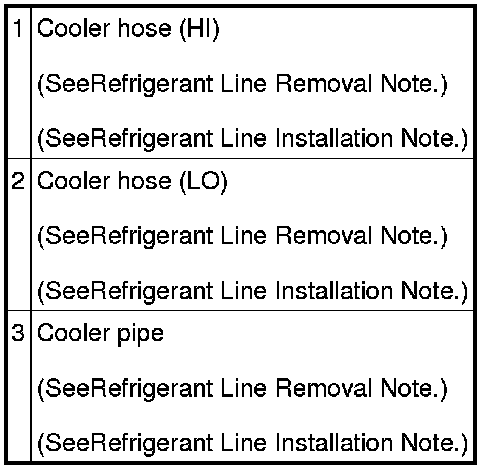 6. Remove in the order indicated in the table. Do not allow compressor oil to spill.