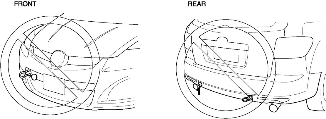 - To prevent damage to the vehicle, do not use the tiedown eyelet (front) and the left/right tiedown eyelet (rear) for towing the vehicle using another vehicle.