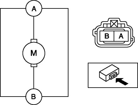 1. Connect battery positive voltage to windshield washer motor terminal A and terminal B to ground.