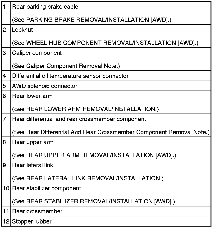 REAR CROSSMEMBER REMOVAL/INSTALLATION [AWD]