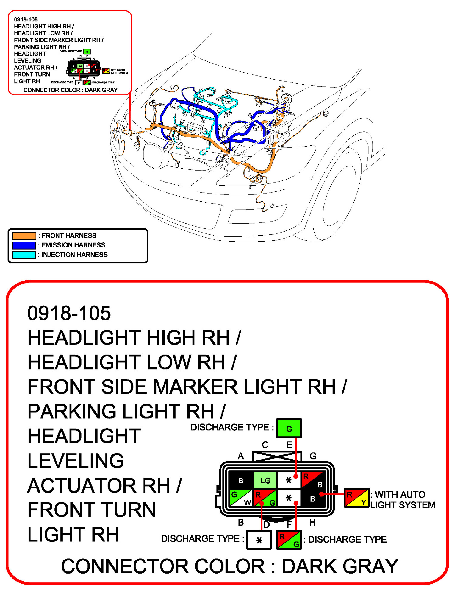 Headlight High RH/Headlight Low RH/Front Side Marker Light RH/Parking Light RH/Headlight Leveling Actuator RH/Front Turn Light RH