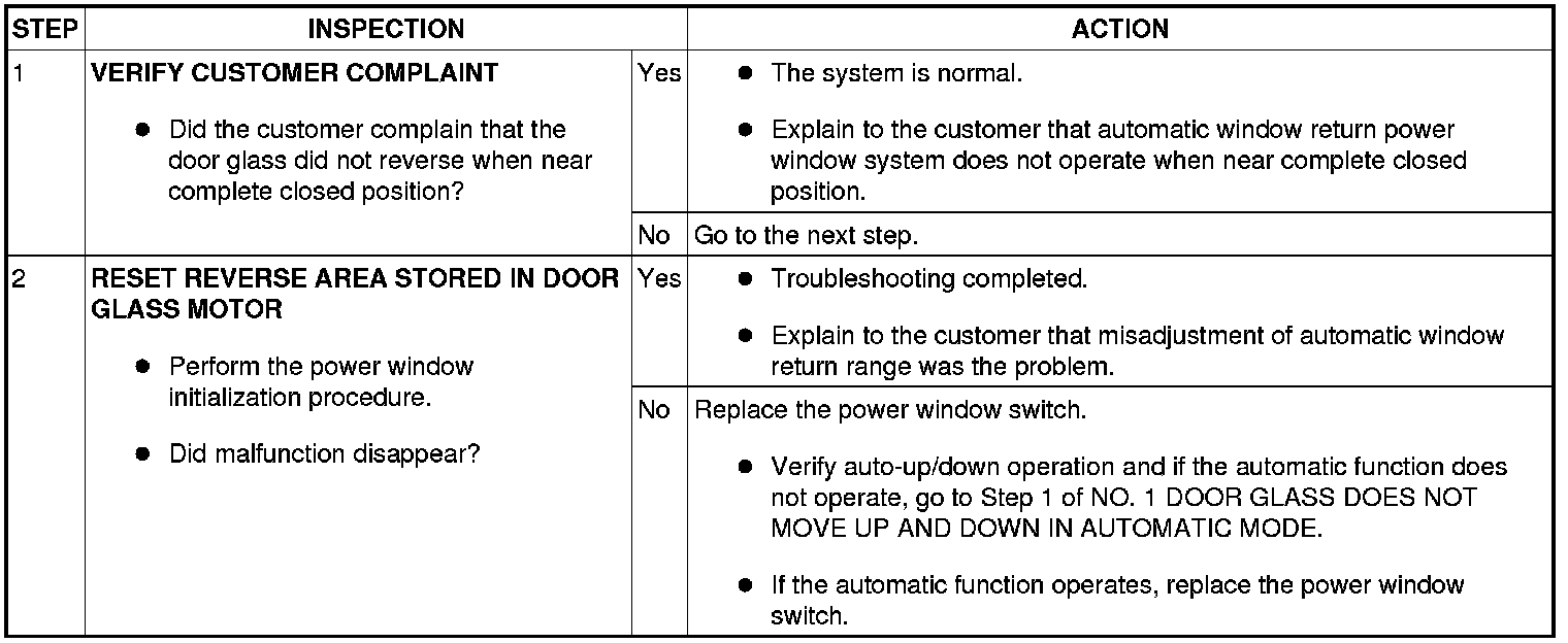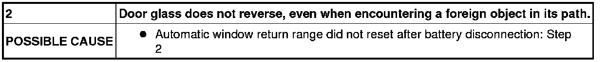 No.2 DOOR GLASS DOES NOT REVERSE, EVEN WHEN ENCOUNTERING A FOREIGN OBJECT IN IT IS PATH [POWER WINDOW SYSTEMS (AUTO-OPEN/CLOSE FUNCTION)]