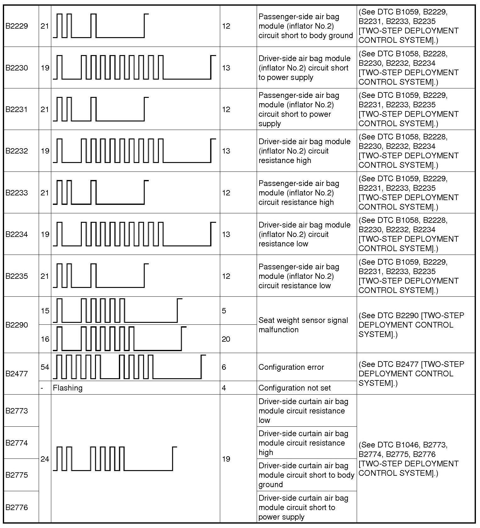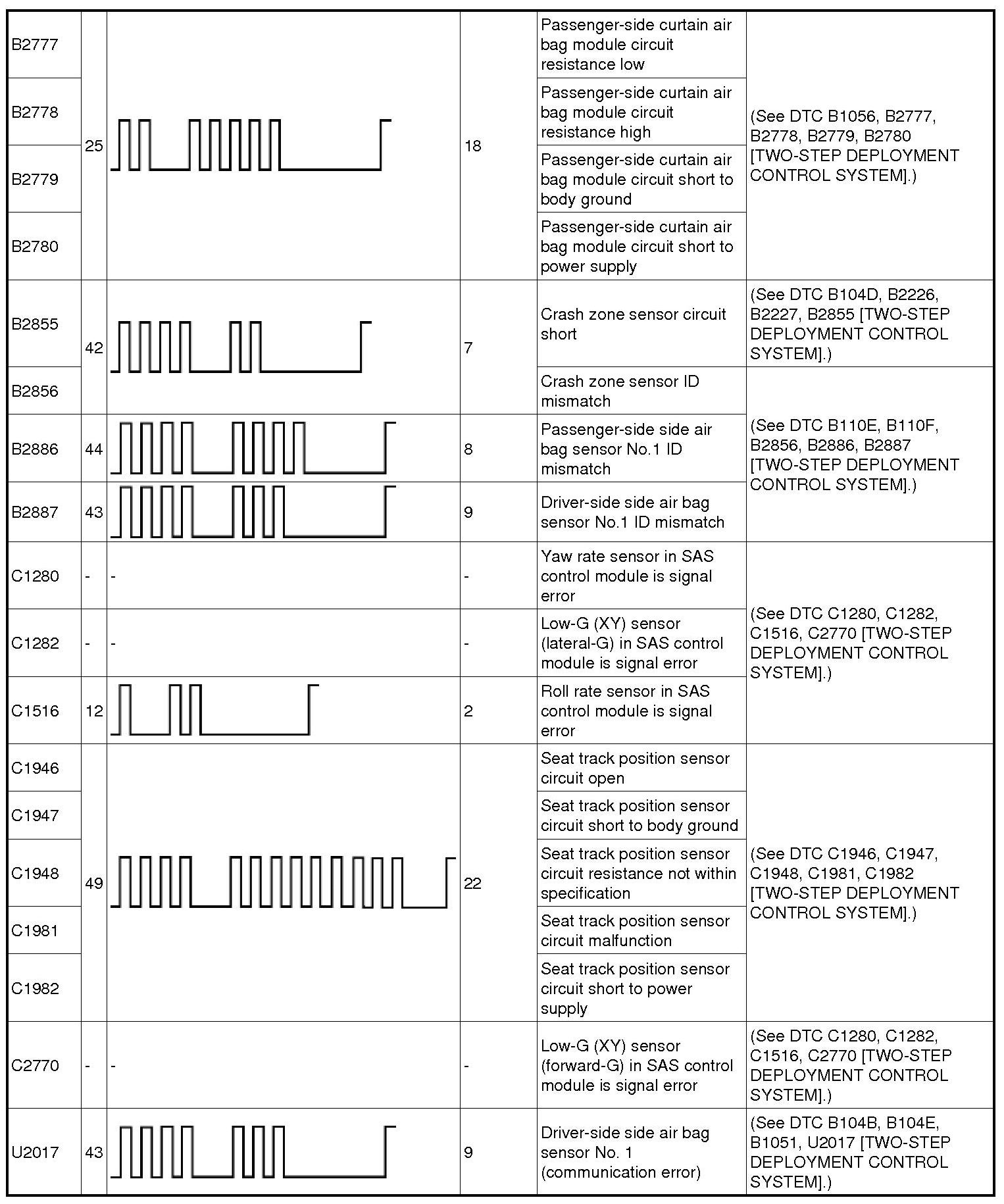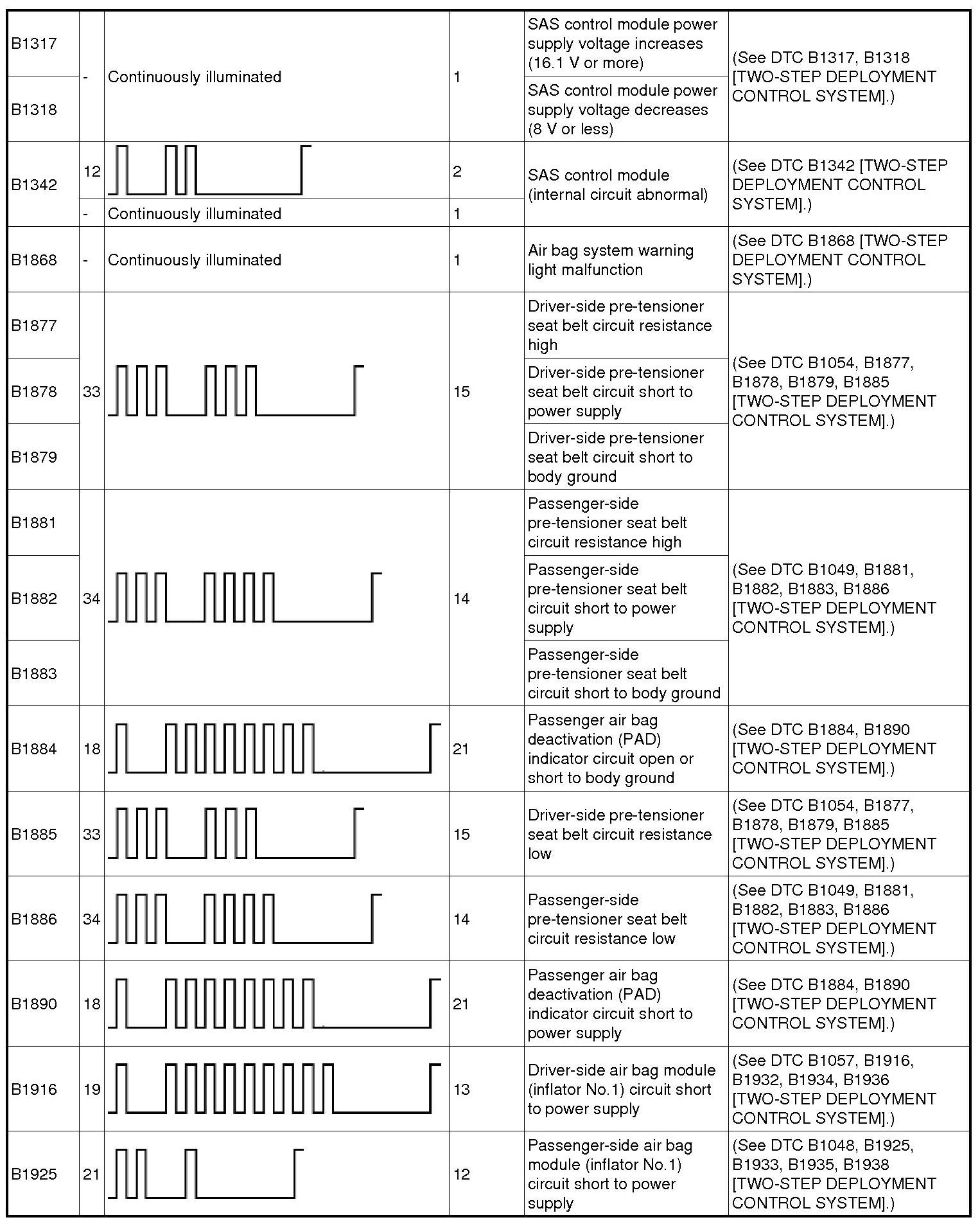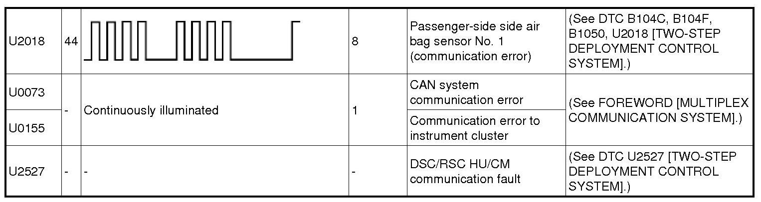DTC TABLE [TWO-STEP DEPLOYMENT CONTROL SYSTEM]