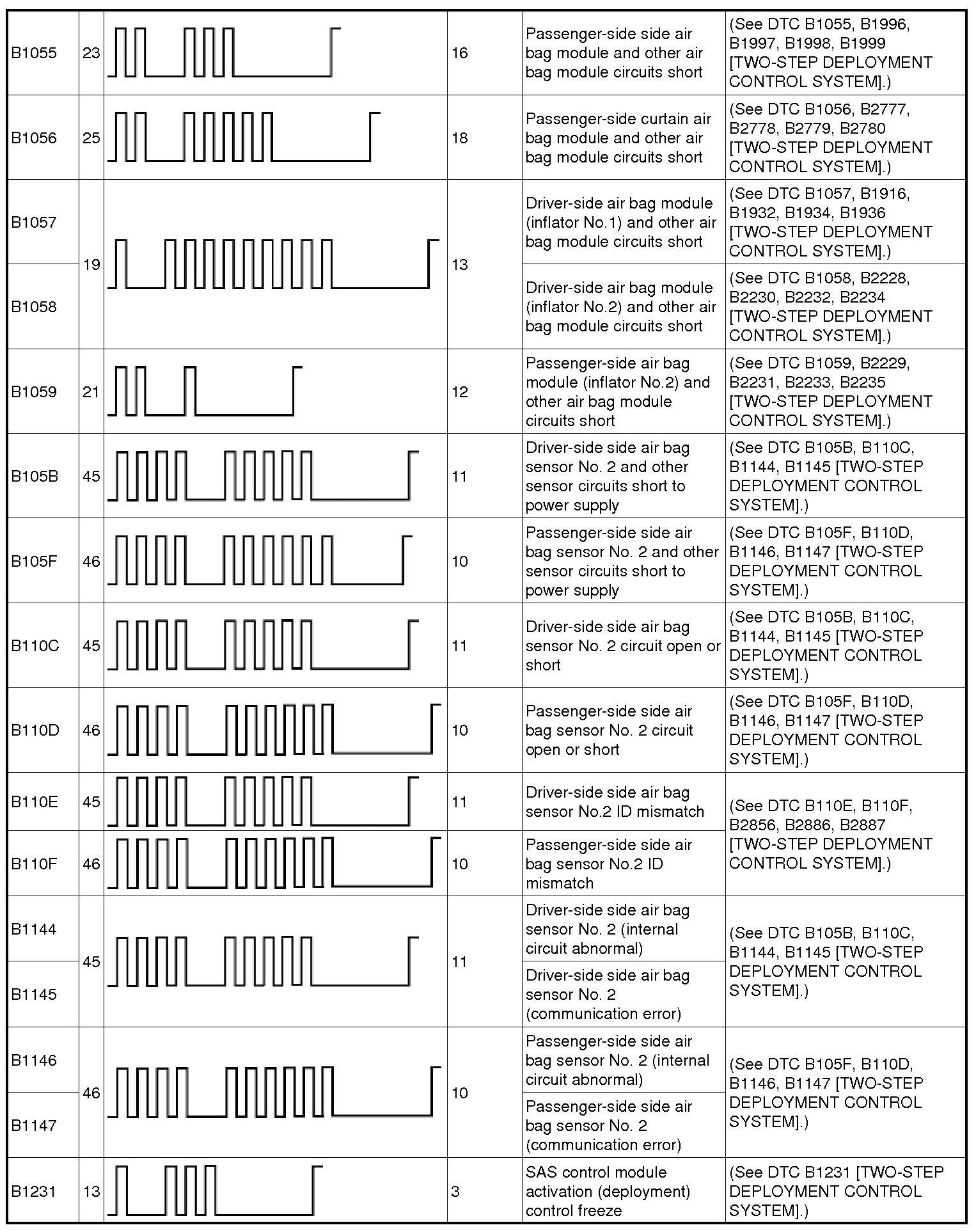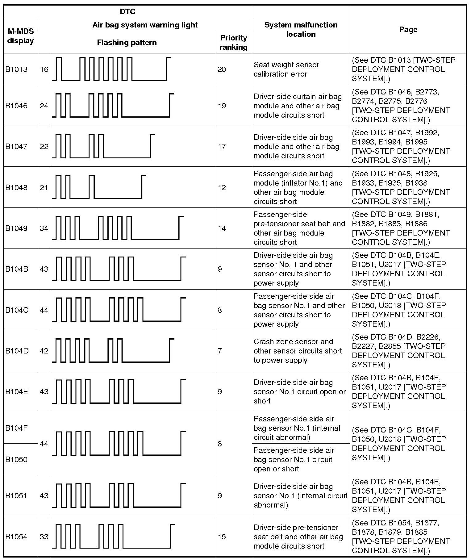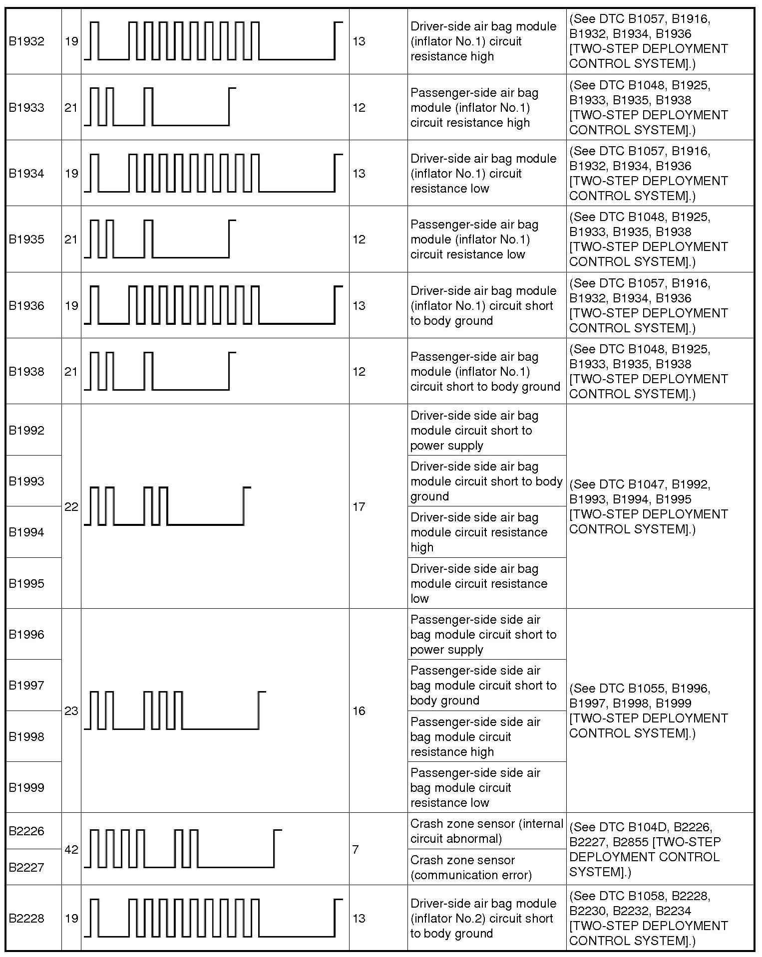 DTC TABLE [TWO-STEP DEPLOYMENT CONTROL SYSTEM]