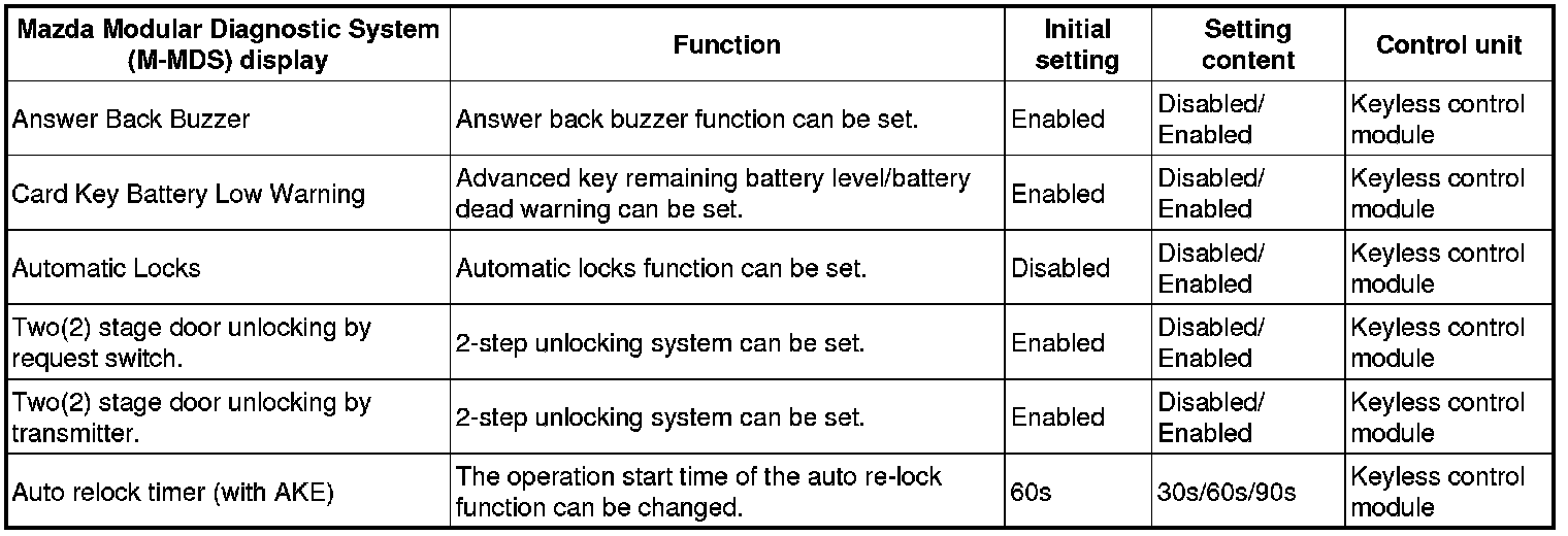 CUSTOMIZED FUNCTION SETTING PROCEDURE [ADVANCED KEYLESS ENTRY AND START SYSTEM]