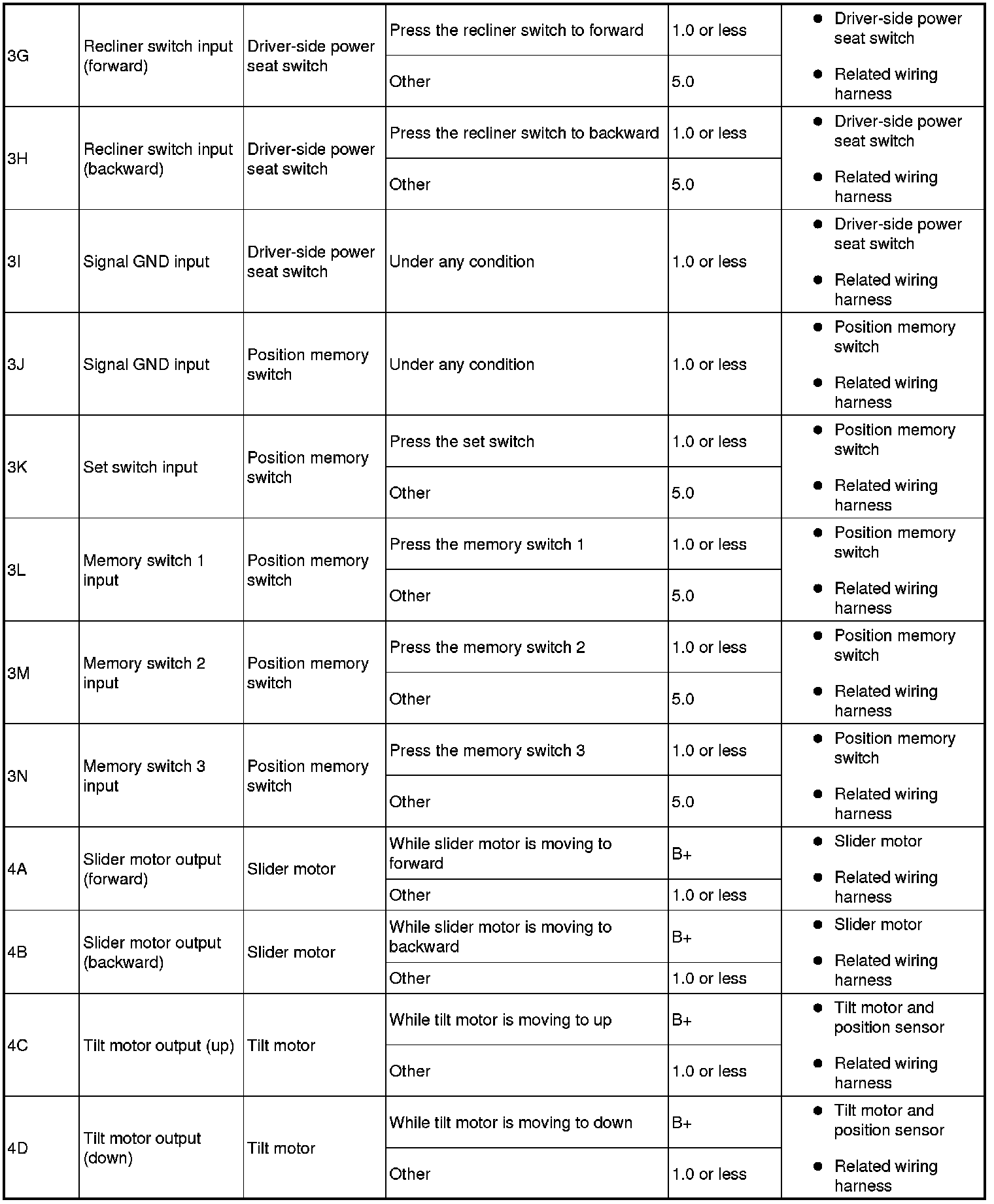 2. If the system does not work properly even though the inspection items or related wiring harnesses do not have any malfunction, replace the position memory control module.