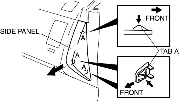 2. Insert fingers into the glove compartment service hole and detach the tabs A.