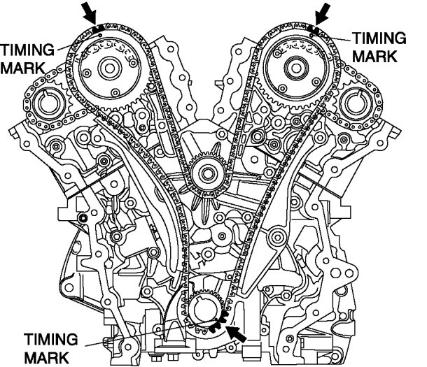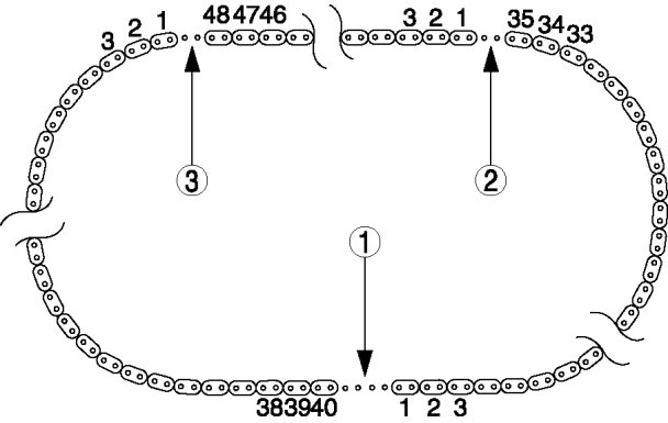 - When the timing chain is replaced with a new one, mark the new timing chain at the same positions as the removed timing chain.
