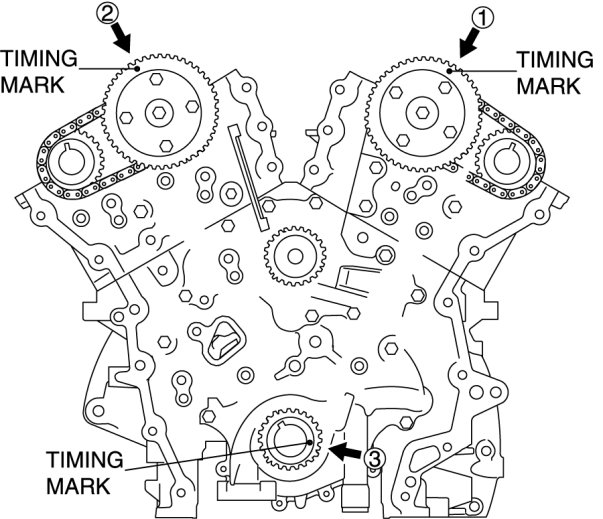 3. Place alignment marks on the timing chain corresponding to each of the alignment marks on the timing sprocket.