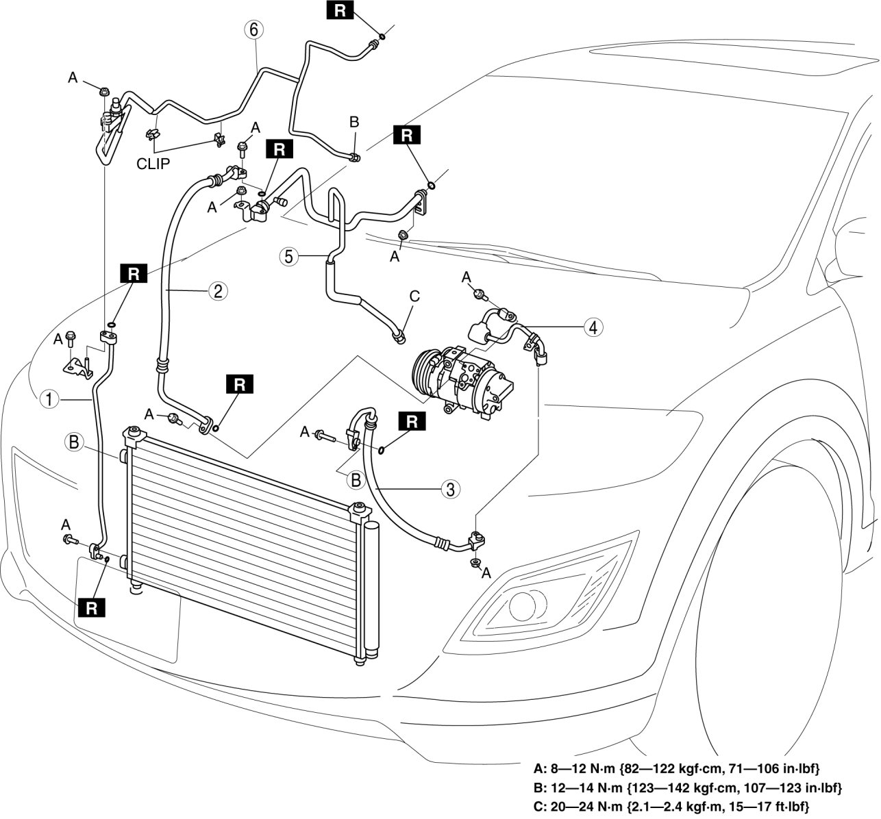 1. When installing a new cooler pipe or cooler hose, add a supplemental amount of DENSO OIL8 compressor oil into the refrigeration cycle. Supplemental amount (approx. quantity) 10 ml {10 cc, 0.34 fl oz}