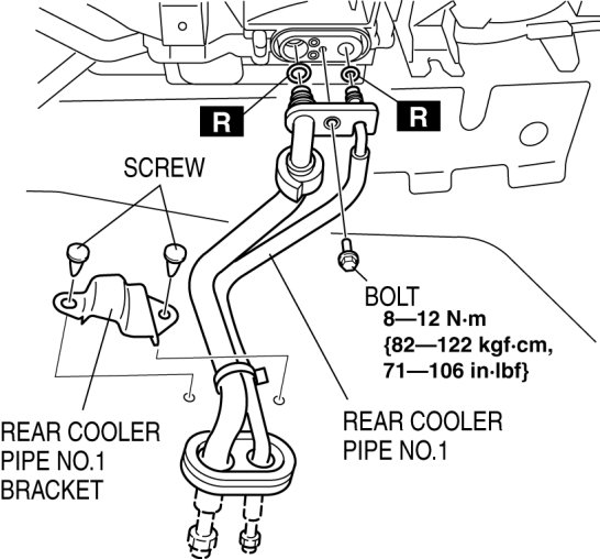 m. Rear cooler pipe No.1 bracket.