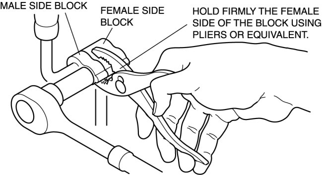 1. Disconnect the block joint type pipes by grasping the female side of the block with pliers or similar tool and holding firmly, and then remove the connection bolt or nut.