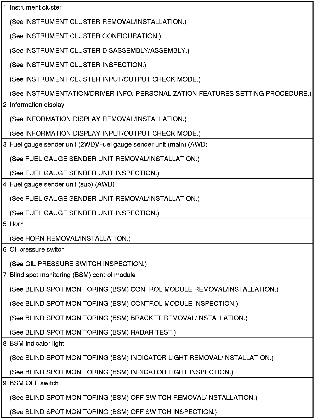 Instrument Panel, Gauges and Warning Indicators: Locations