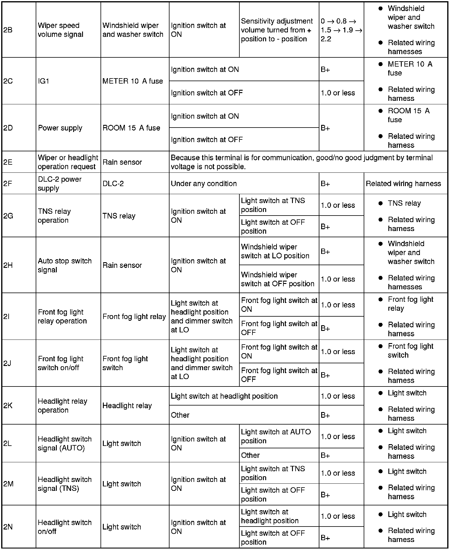 - If the voltage is not as specified in the Terminal Voltage Table, inspect the parts under "Inspection item (s)".