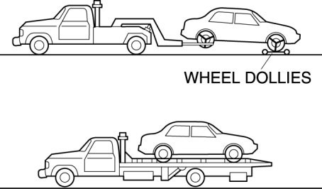 - A towed 2WD vehicle should have its drive wheels (front wheels) off the ground. If excessive damage or other conditions prevent this, use wheel dollies.