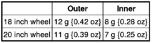 - One balance weight must not exceed 60g {2.12 oz}, and a total of 2 balance weights must not exceed 100g {3.53 oz}.