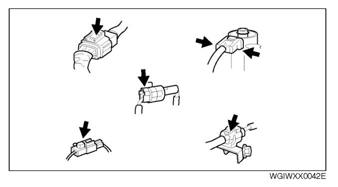 - Before disconnecting connectors or removing electrical parts, disconnect the negative battery cable.