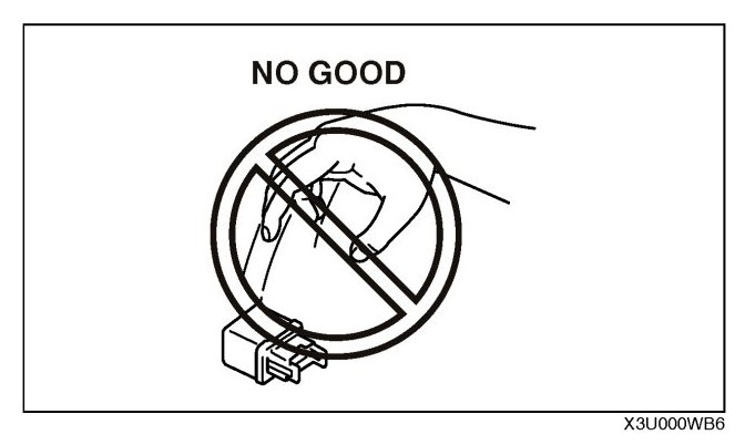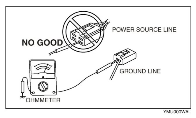 - When a tester is used to inspect for continuity or measuring voltage, insert the tester probe from the wiring harness side.