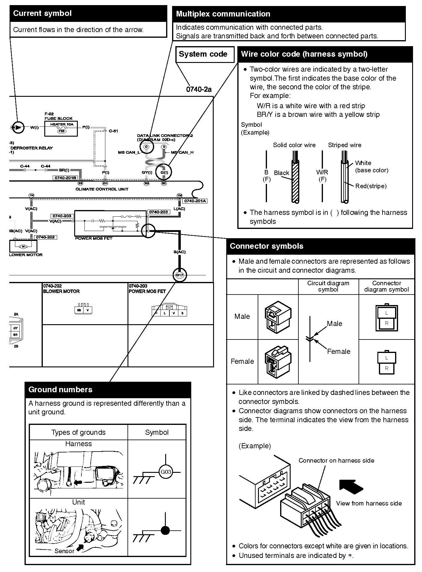 SYSTEM CIRCUIT DIAGRAM/CONNECTOR DIAGRAM- These diagrams show the circuits for each system, from the power supply to the ground. The power supply side is on the upper part of the diagram, the ground side on the lower part. The diagrams describe circuits with the ignition switch off.