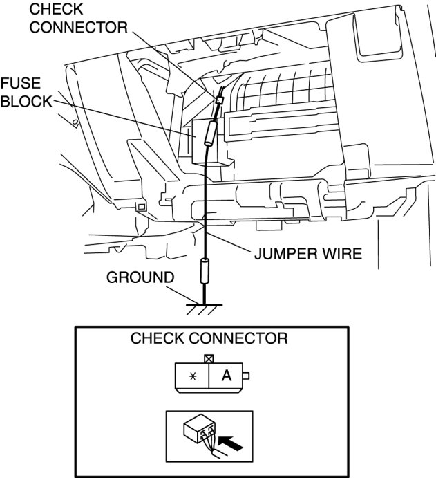 3. Short the check connector terminal A to the ground using a jumper wire.