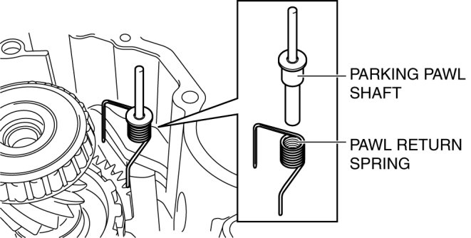 - When installing the pawl return spring to transaxle case, install the parking pawl side of the spring, then install the parking pawl shaft.