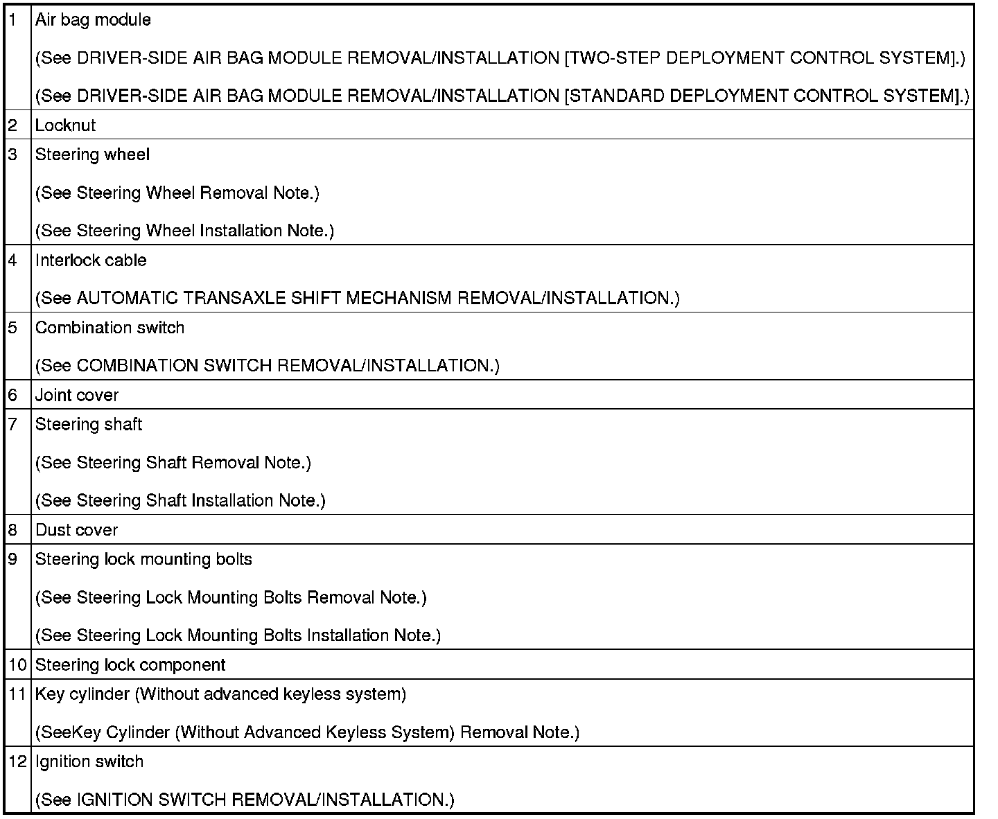Steering Lock Mounting Bolts Removal Note
