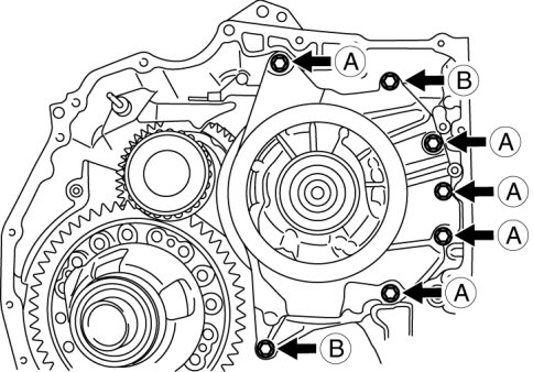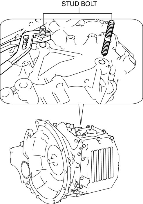 - If any of the stud bolts is overtightened, the transaxle case may be damaged (holes in the case may result).