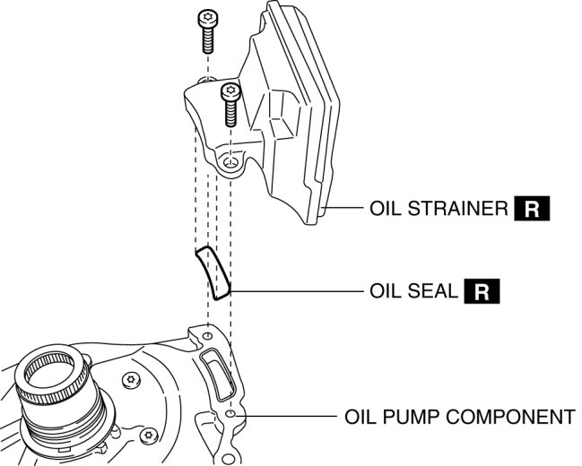 11. Install the new oil strainer and the new oil seal to the oil pump component.