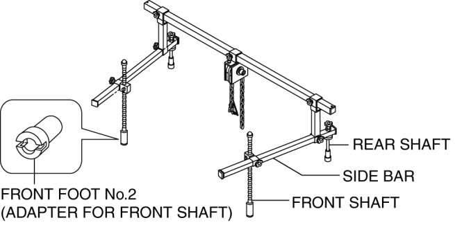 a. Install the front foot No.2 to the left and right front shafts of the SST.