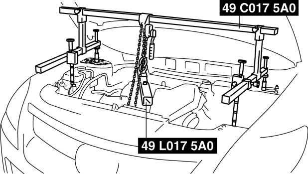 1. Adjust the SST to tilt the engine to the transaxle side.