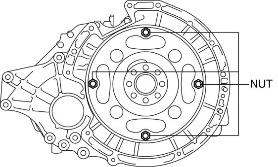 - Loosely and equally tighten the torque converter nuts, then further tighten them to the specified tightening torque.