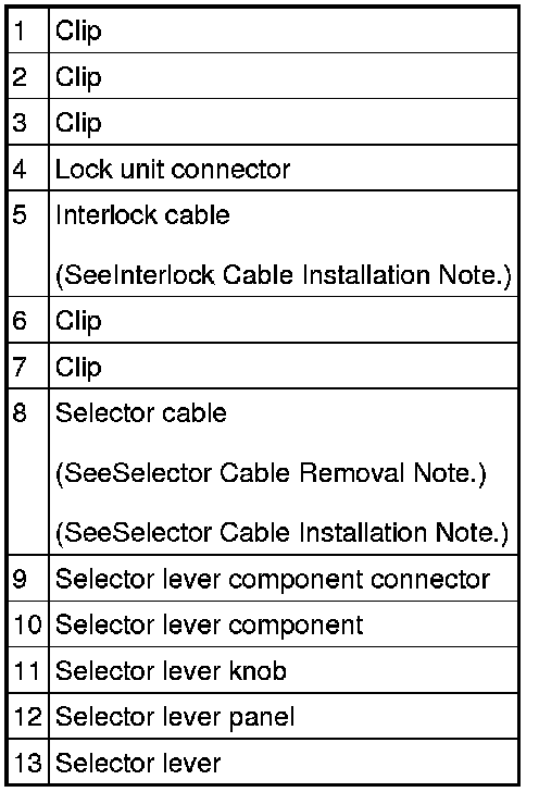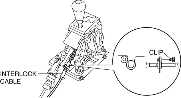4. Remove the interlock cable from the selector lever component.