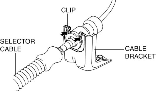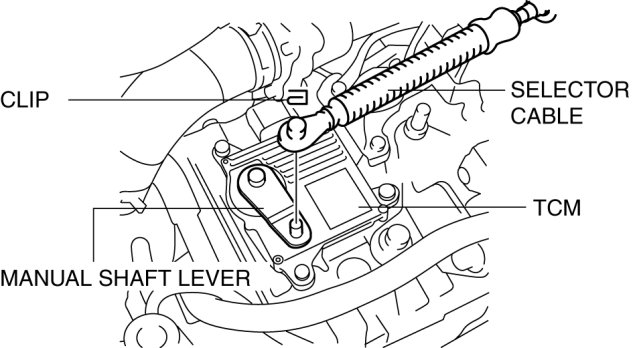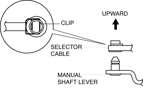 1. Remove the clip from the selector cable and disconnect the selector cable from manual shaft lever.