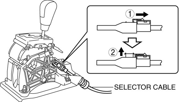 3. Unlock the lock piece of the selector cable (selector lever side) in the order shown in the figure.