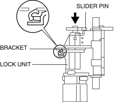 9. With the slider pin pressed, slide the lock unit to fix the lock unit hook into the bracket hole securely as shown in the figure.