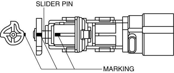 2. Verify that the marking on the slider pin is positioned as shown in the figure.