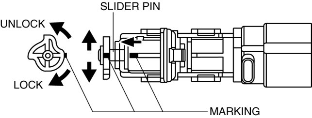15. Rotate the slider pin to release the lock and verify that it slides freely.