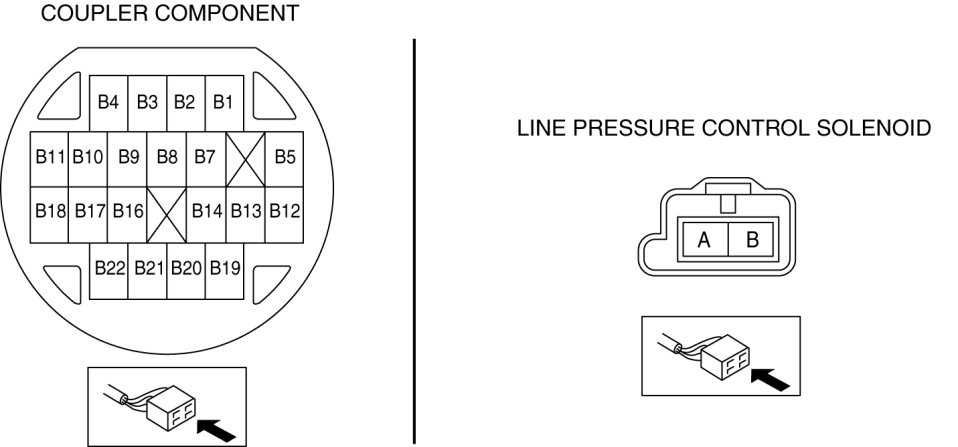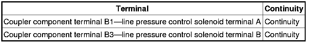 - Measure the continuity between coupler component terminal B1 and line pressure control solenoid terminal A.