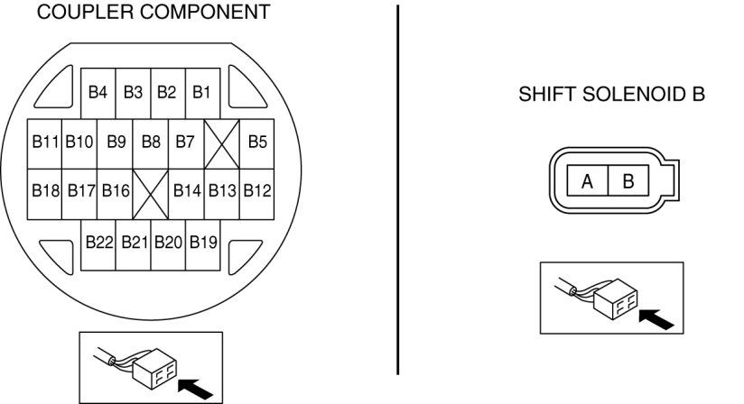 - Measure the continuity between coupler component terminal B5 and shift solenoid A terminal B.