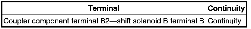 - Measure the continuity between coupler component terminal B2 and shift solenoid B terminal B.