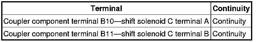 - Measure the continuity between coupler component terminal B10 and shift solenoid C terminal A.