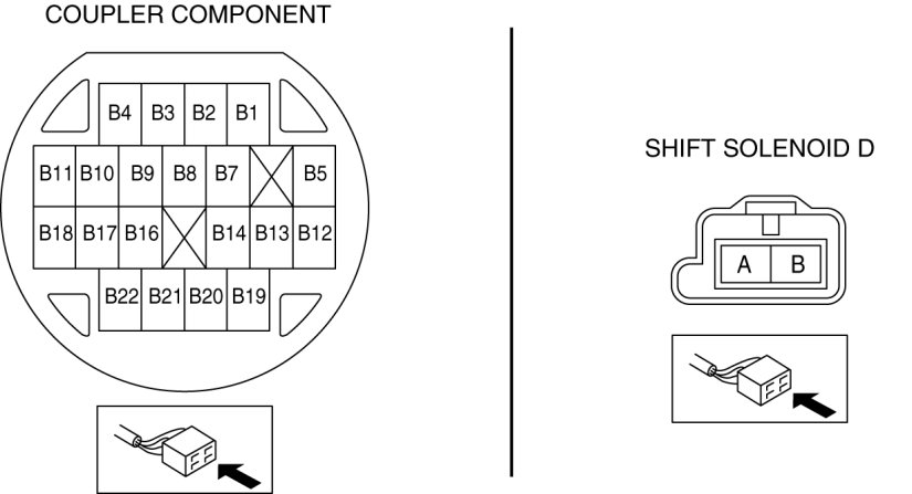 - Measure the continuity between coupler component terminal B17 and shift solenoid D terminal B.