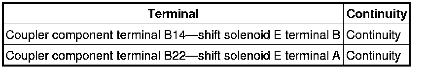 - Measure the continuity between coupler component terminal B14 and shift solenoid E terminal B.