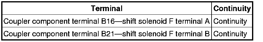 - Measure the continuity between coupler component terminal B16 and shift solenoid F terminal A.