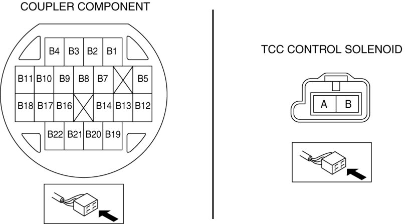 - Measure the continuity between coupler component terminal B4 and TCC control solenoid terminal A.