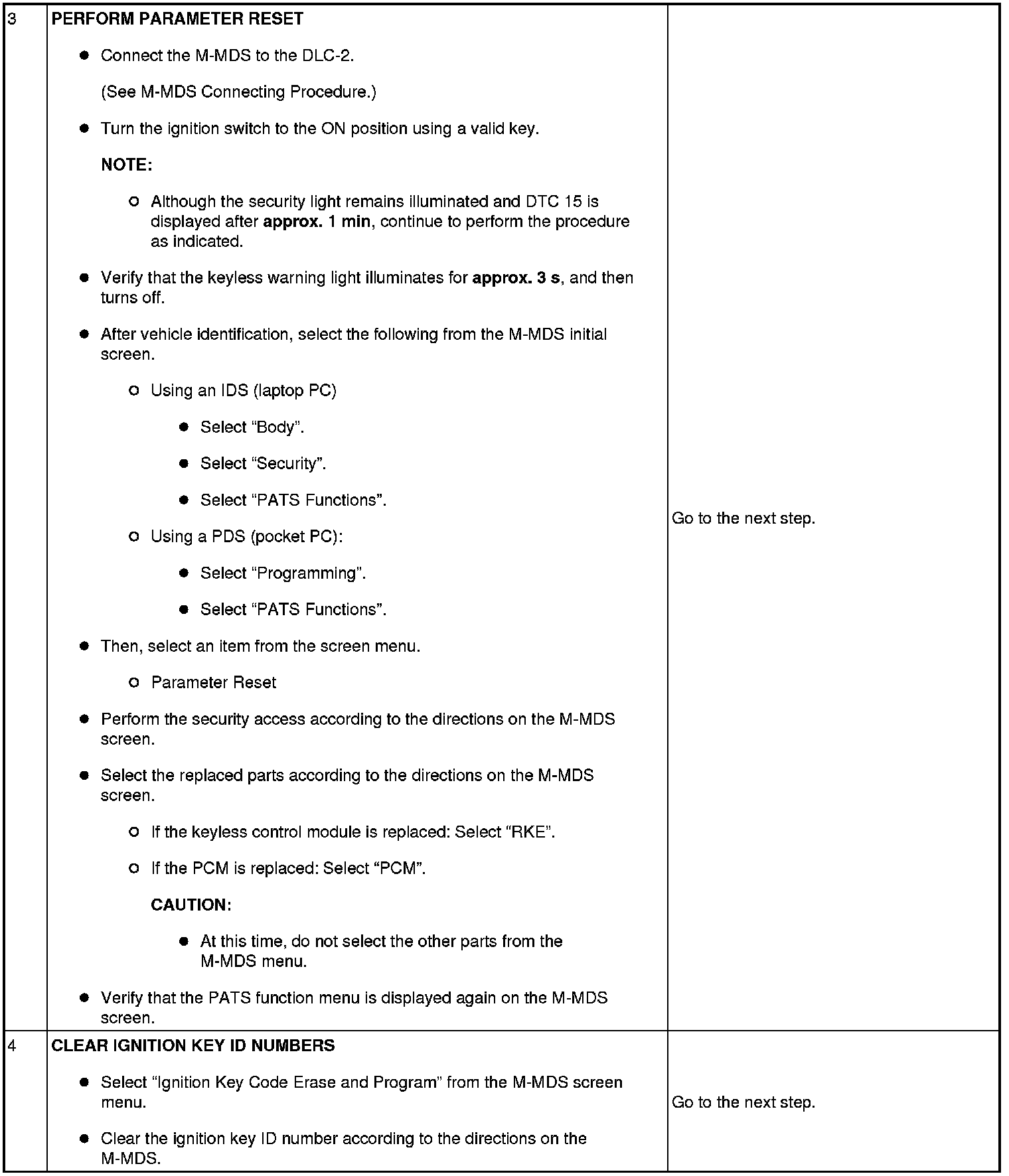 No.6 Programming Procedure Due to Simultaneous Replacement of Immobilizer System-related Parts (PCM and Keyless Control Module)