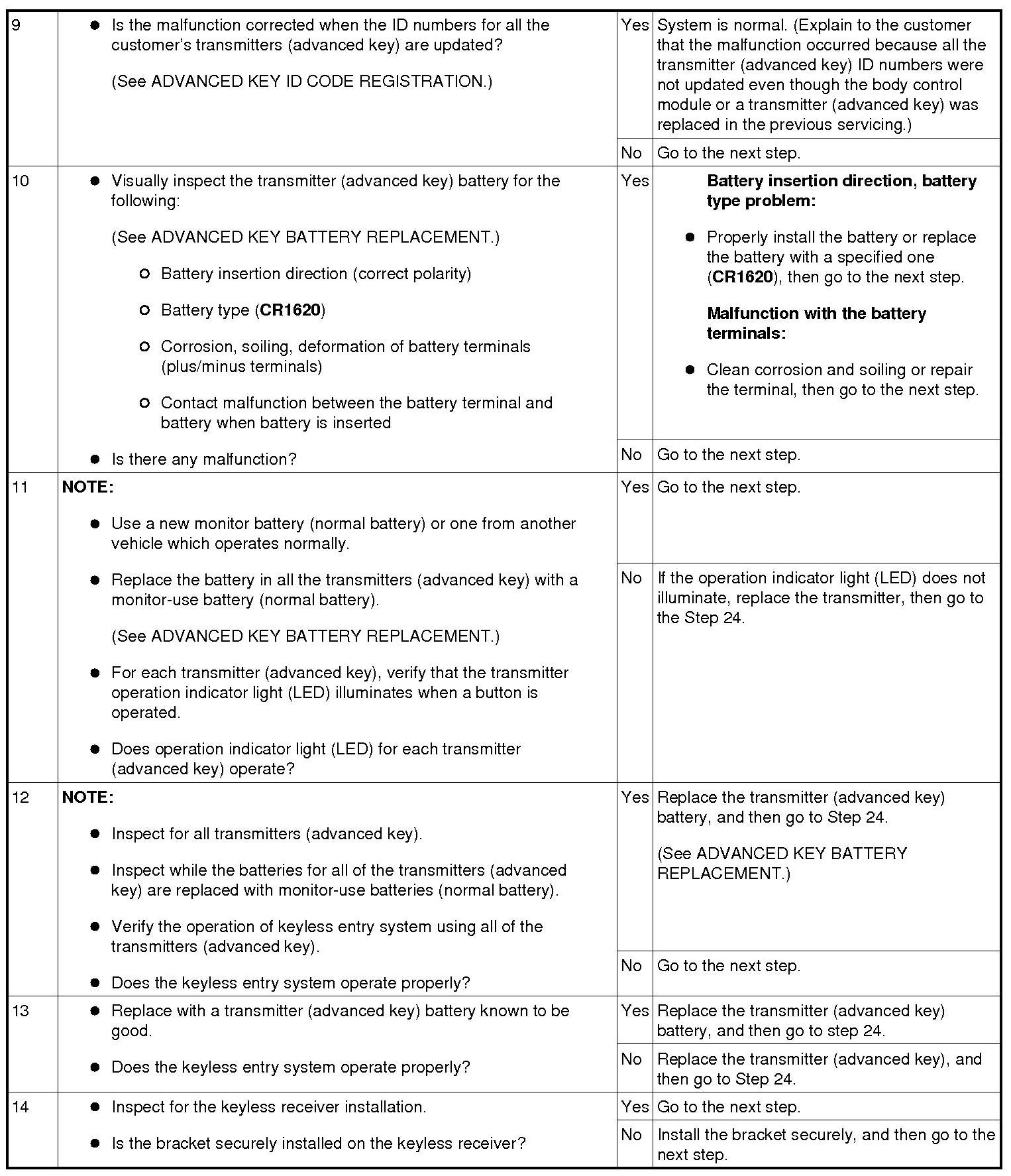 NO.1 DOOR CANNOT BE LOCKED/UNLOCKED BY TRANSMITTER (ADVANCED KEY) [ADVANCED KEYLESS AND START SYSTEM]