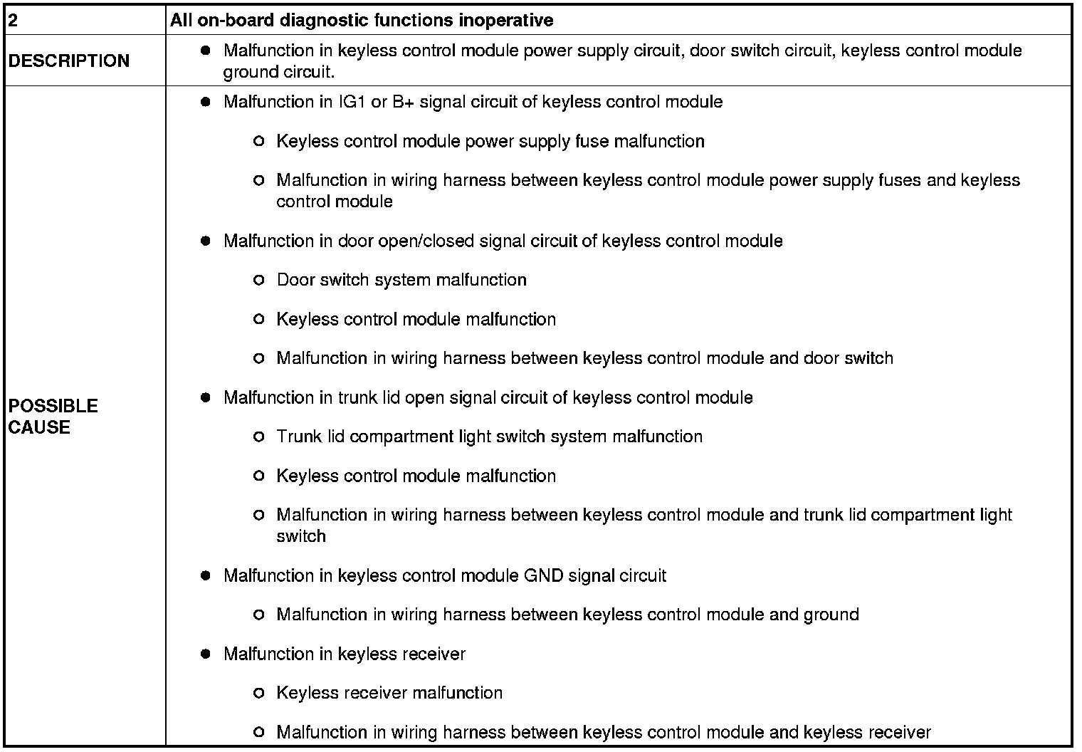 NO.2 ALL ON-BOARD DIAGNOSTIC FUNCTIONS INOPERATIVE [KEYLESS ENTRY SYSTEM]