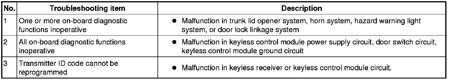 SYMPTOM TROUBLESHOOTING CHART [KEYLESS ENTRY SYSTEM]